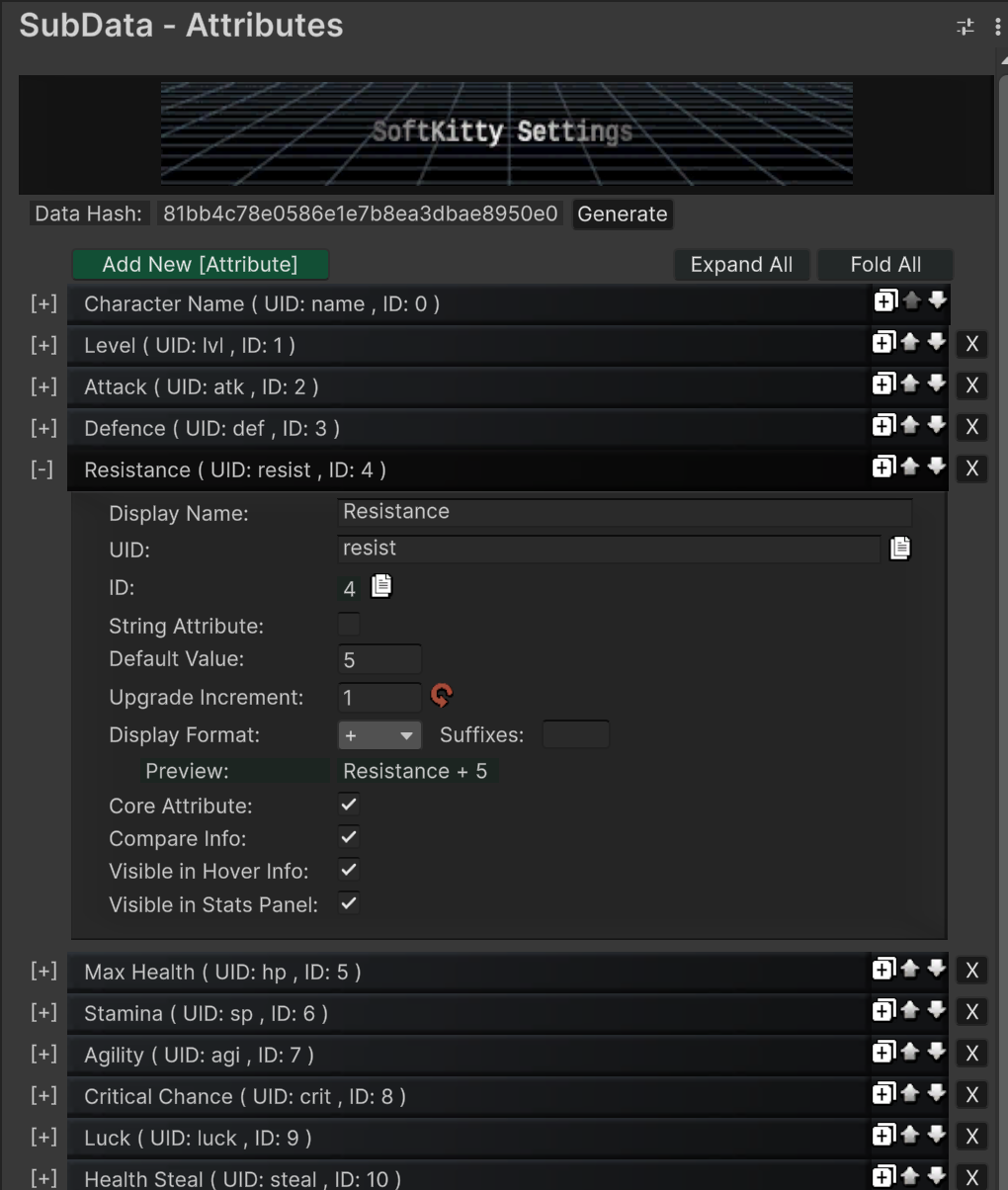 Project Settings → SoftKitty → SubData - Attributes