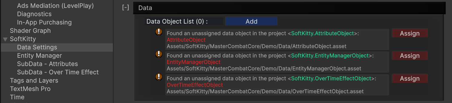 Project Settings > SoftKitty > Data Settingsand expand theDatasection. - Click the