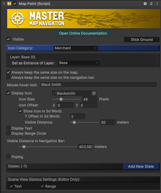 MapPoint.cs is a versatile component that integrates a GameObject into the map system and manages its behavior. Any GameObject with a MapPoint component will appear on the Mini Map, World Map, and Navigation Bar based on its position in the game scene.