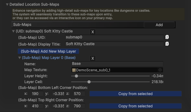 Add New Sub-Mapbutton. A newsub-mapentry will appear for the currently selected scene. - Configure the following properties for your new